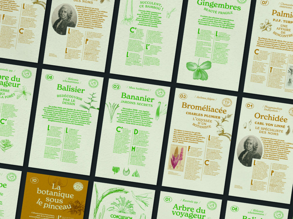 {FR} Dans le cadre de l’Automne Tropical, Le Muséum national d’Histoire naturelle de Paris a collaboré avec le studio pour la réalisation de l’exposition « Dessiner la botanique » dans les Grandes Serres du Jardin des Plantes en collaboration avec la Maison Poaplume.